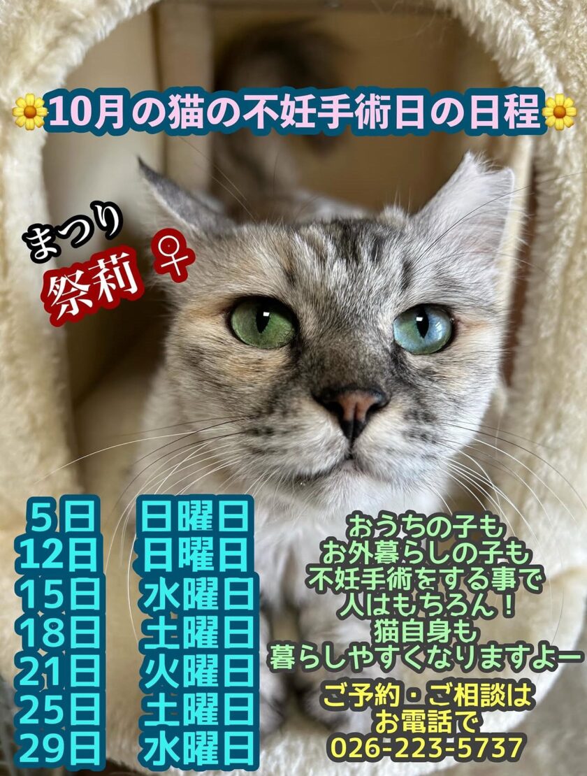 更に季節的なことからすると成猫も含め、6月から9月位までが、手術適期といえるでしょう。