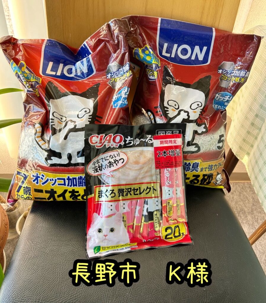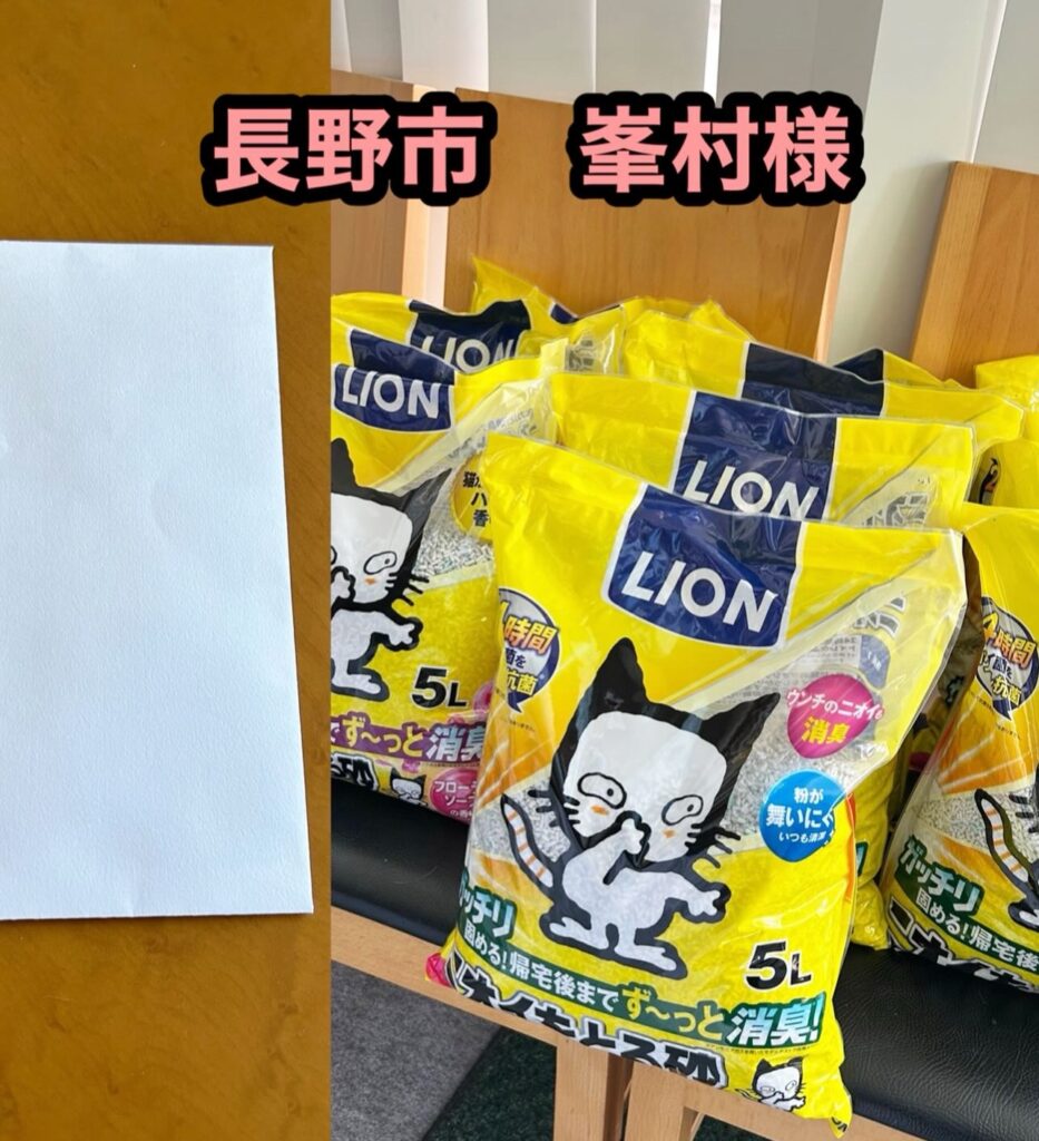 毎月、トイレ砂をご支援いただいていた峯村さま