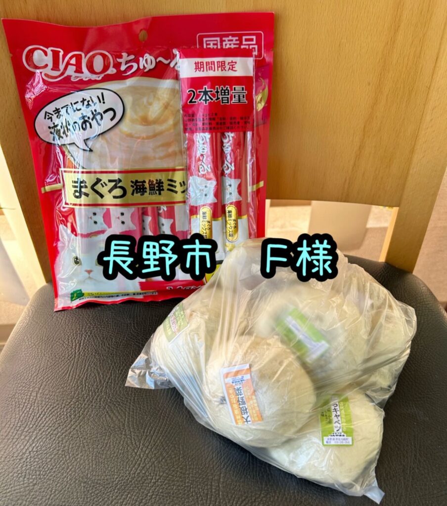 フードが安くなってたから!と当協会の分も購入してくださり、届けてくださいました!!