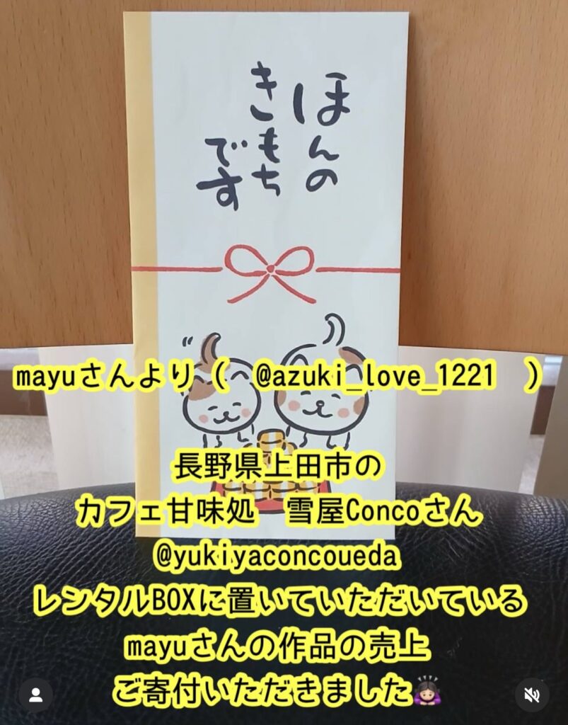 mayuさんの作品の売上のご寄付をお持ちくださいました